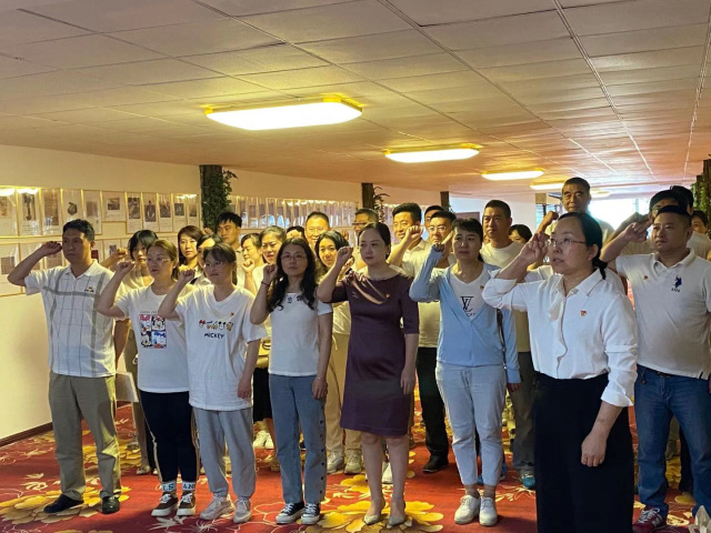 6月25日下午,為慶祝黨的百年華誕,集團公司黨委組織旅游和開發支部黨員、機關黨員干部及入黨積極分子開展了“塔山集團慶祝建黨100周年主題黨日”活動。集團公司黨委書記曹長宏同志同大家一起參加了活動,并作了動員講話。活動期間,大家在塔山黨史宣講基地參觀了百年黨史圖片展,觀看了《百煉成鋼:中國共產黨的100年》中的部分節選微記錄片,全體黨員及入黨積極分子在黨史宣講基地進行了重溫入黨誓詞宣誓活動。宣誓活動結束后大家一起赴牟平養馬島日月園溫泉度假酒店進行了整治室內衛生義務勞動。