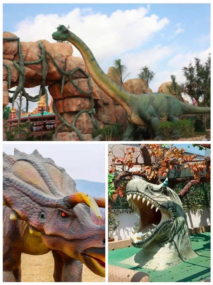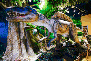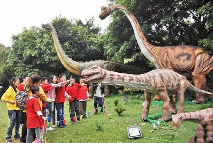 這里有各式各樣的恐龍:霸王龍、翼龍、鐮刀龍、特暴龍、三角龍等等,多種仿真恐龍都可以見到、摸到,它們不僅身軀龐大,還能動,更能發出逼真的吼叫聲,穿梭其中,仿佛置身于億萬年前的侏羅紀世界…
